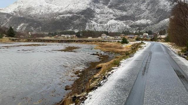 Mange grøfter langs kommunale veier er nå fylt opp av is. På grunn av den lange kuldeperioden, har isen noen steder også bredt seg videre utover veibanen.