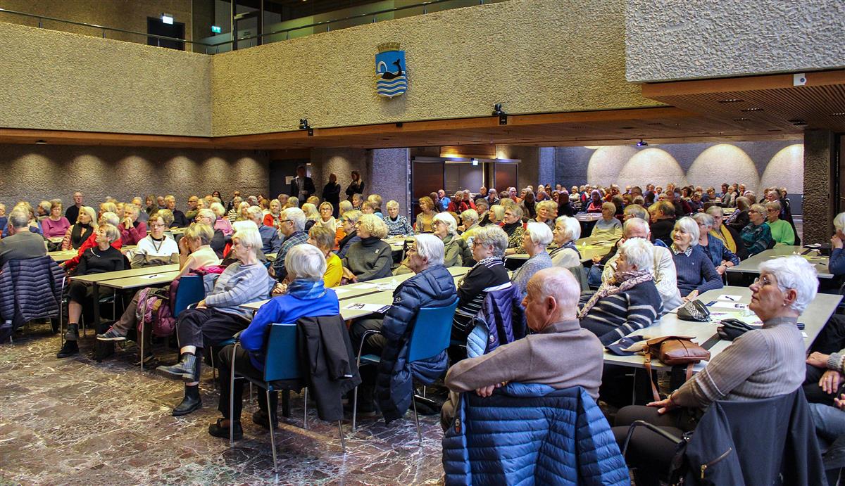 Bli med på seniorundersøkelse!Hvordan er det å være senior i Molde, egentlig? Det ønsker Molde kommune å finne ut av! Er du over 60 år og får telefon fra Norstat de kommende dagene, så håper vi at du setter av noen minutter til å svare på undersøkelsen. I perioden fra 26. november og til 5. desember skal Norstat intervjue 300 innbyggere over 60 år, bosatt i Molde kommune. De vil hovedsakelig ta kontakt på telefon, mens noen får en SMS. Hvor mange dager i løpet av ei uke er du sosial med venner eller familie? Hva setter du mest pris på i bo- og nærmiljøet ditt? Og har du vært med på seniortimen? Det er noen av spørsmålene Norstat kommer til å stille, på vegne av kommunen. Svarene skal brukes i evalueringen av prosjektet “senior i Molde” og gi kunnskapsgrunnlag til boligpolitisk plan og til den videre utviklingen av Molde som aldersvennlig samfunn. Om prosjekt senior i MoldeI Molde vil antall eldre over 80 år mer enn doble seg de neste 20 årene. I fjor vår etablerte kommunen satsingen “senior i Molde” - et toårig prosjekt der målet har vært å inspirere seniorene å ta de rette valgene tidlig nok. – I prosjektperioden har vi prøvd ut ulike måter å nå målgruppa på, opplyser kommunikasjonssjef Hilde Johansen. Hun er prosjektleder for satsingen. Gjennom støtte fra Gassror IKS har kommunen blant annet utgitt tre seniormagasiner og etablert egen nettside for seniorer. Det er også blitt arrangert i alt atten seniortimer i Molde rådhus, med ulike temaer. Nå skal tiltakene evalueres, og undersøkelsen er et ledd i denne evalueringen. Fullsatt rådhussal på seniortime. Her fra januar. Sist endret 24.11.2025 15.38