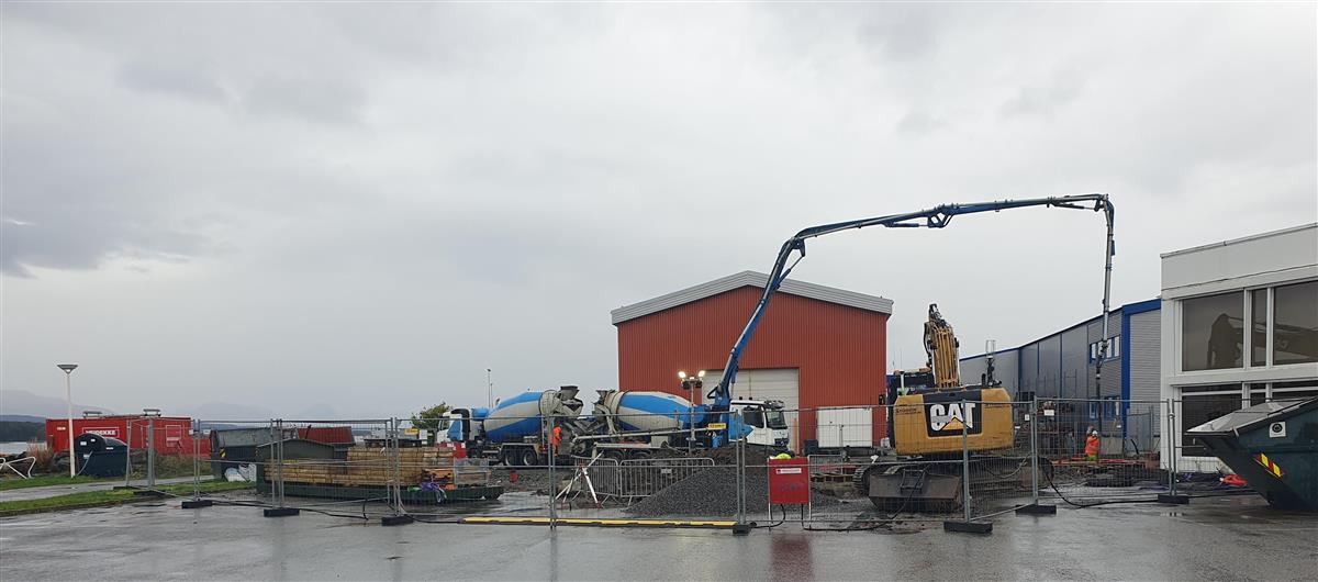 Det er et tilbygg til Molde brannstasjon som skal bli nye lokaler for feiervesenet, som nå bygges i såkalt “lavkarbon ekstrem betong” og “lavkarbon A-betong”.