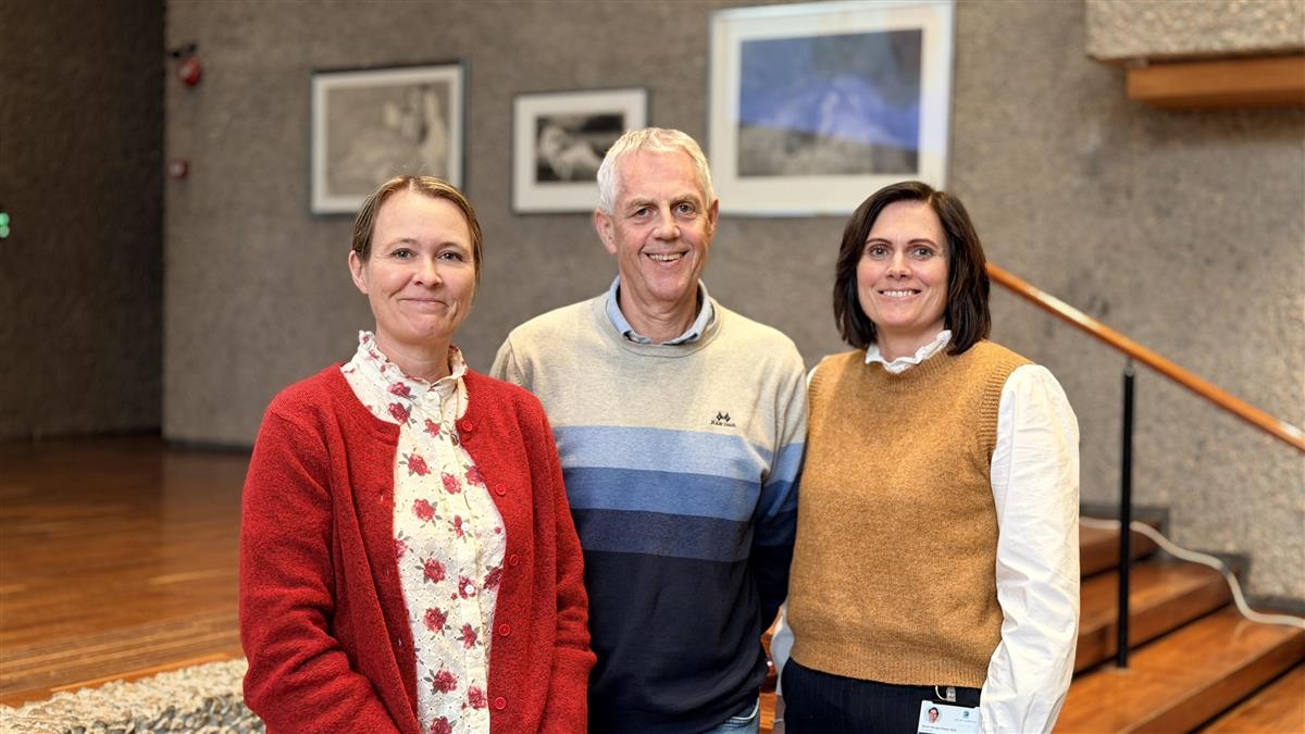 Fornøyde med dagen: enhetsleder Monica Hansen i Kristiansund kommune, Geir Dagfinn Sylte i Helseinnovasjonssenteret og enhetsleder Mette Borge-Olsen Moe i Molde kommune.Les mer om prosjektet «Omstilling i bo og habilitering».