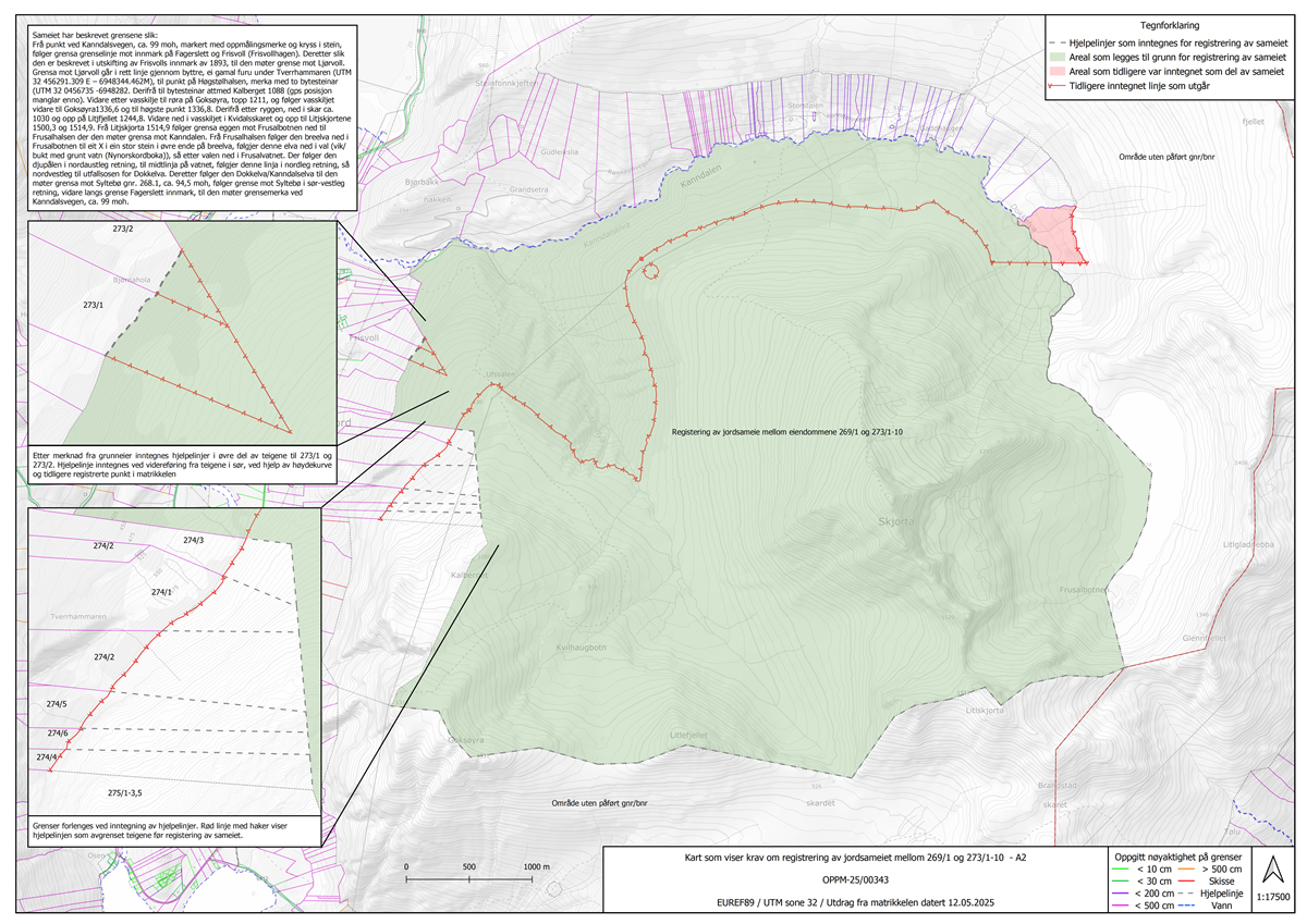 Registering av jordsameie i utmarka til Fagerslett og FrisvollDet skal registreres et jordsameie tilhørende eiendommene 269/1 og 273/1-10. Jordsameiet ligger i fjellet sør for Kanndalselva/Dokkelva, vest for Frusalvatnet, videre avgrenset av Frusalhalsen, Litlskjorta, Litlefjellet, Goksøyra, Kalberget og til slutt langs registrerte eiendommer på Ljørvoll og Frisvoll.Eiendomsregisteret gir ikke god oversikt over mulige naboer eller rettighetshavere i området. Hvis du har andel i et sameie, er grunneier eller rettighetshaver i området kan du kontakte landmåler for mer informasjon.Vi holder kontorforretning på kommunehuset i Eidsvåg mandag 20. oktober kl. 12.00.Ta gjerne kontakt md landmåler for mer informasjon. Sist endret 25.09.2025 14.48
