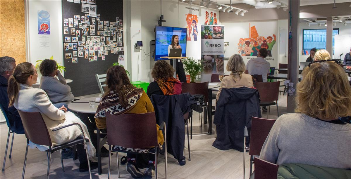 Vi fikk besøk av Rose Bergslid fra Norsk senter for økologisk landbruk (NORSØK) og Unni Støbet Lande fra Norsk institutt for bioøkonomi (NIBIO) på Tingvoll gard som holdt innlegg om bærekraftig bruk av lokale ressurser som finnes i fylket. Anne Katrine Jensen er en lokal representant av Økologisk Norge og fortalte om organisasjonen og kom sammen med inspirasjonsbonde fra Ingdal Øvre gård i Sør Trøndelag. Inger-Lise Ingdal er bonde og delte sin erfaring om hvordan det er i praksis å tilrettelegge til økologisk produksjon på egen gård. Til slutt delte Bård Watn og Mads Pålsrud fra Haugneset Gård sin egen historie om å flytte fra en stor by til å starte drift av en andelslandsgård.